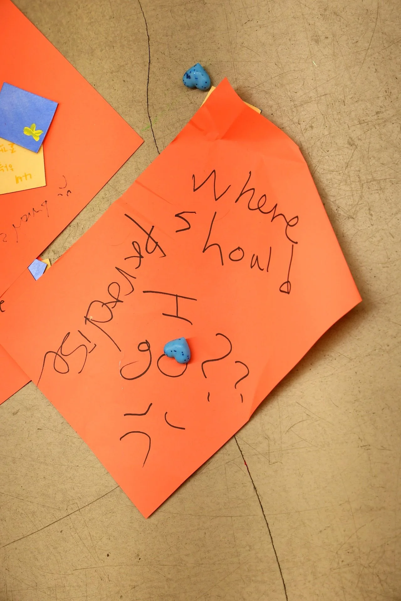 Na-bi, who had come from paradise, is unfamiliar with its surroundings and is unable to vocalize the human language, so much of the communication and interaction was done nonverbally through written conversation, hand gestures and body language. To thank those who sat with Na-bi, willingly told their stories, and patiently read Na-bi’s clumsy handwriting, Na-bi gifted a ‘butterfly sky piece’ and a blue heart.